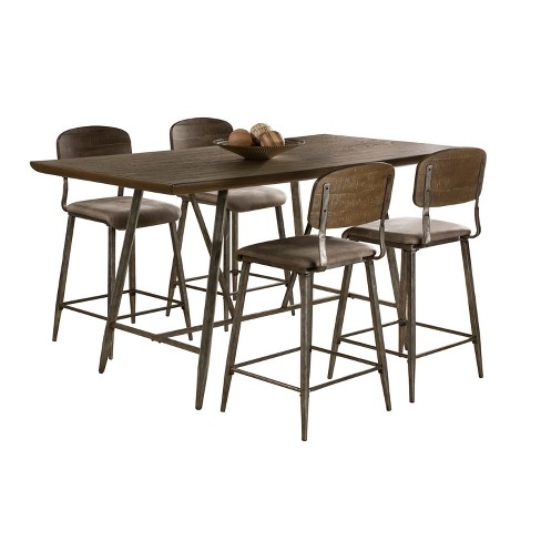 5pc Adam Counter Height Dining Set Brown Antique Steel Hillsdale