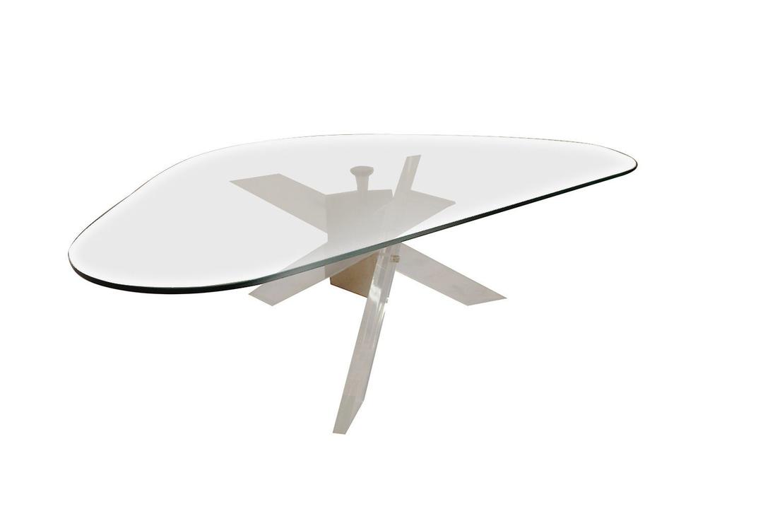 Sculptural Lucite Brass Base Glass Coffee Table By