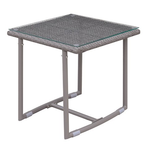 Georgio Modern Glass Top Patio End Table In Gray Furniture Of