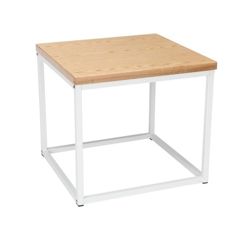 Industrial Modern Wood Top Metal Frame Side Table White Natural