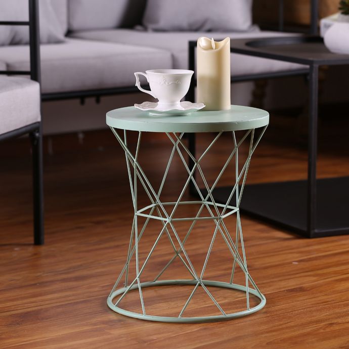 Outdoor Retro Metal Tulip Side Table Turquoise Blue Walmart Com