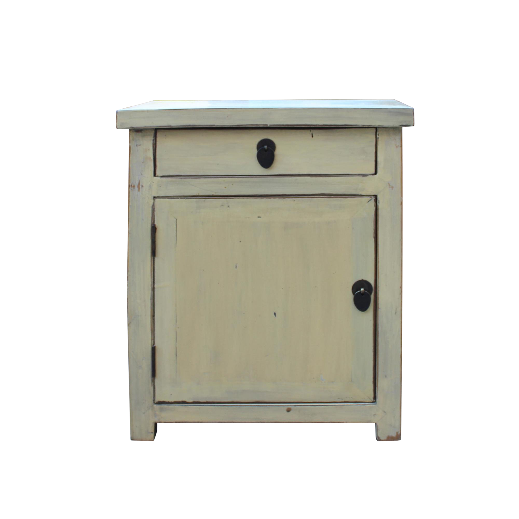 Chinese Oriental Distressed Cream Off White End Table Nightstand